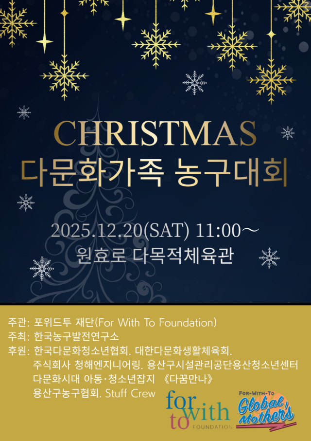글로벌프렌즈 파스텔프렌즈많은 즐거운 추억을 남겼다. 이숙혜2か月 ago10時間 ago01 mins 서울특별시 약자와의 동행 공모사업으로 진행된 용산구청 글로벌프렌즈 다문화가족 청소년 농구교실 사업이 종료되었다. 박희영 용산구청장의 축하로 시작. 많은 즐거운 추억을 남겼다. 주관한 용산청소년센터에서 아쉽게 마감하고 2026년은 초등학생을 대상으로 전국제패를 목표로 간다. 해보자. 안되면 다시 한다. 投稿ナビゲーション Previous: 전국다문화체육회장께서 참관.Next: 2025년 행복했다.